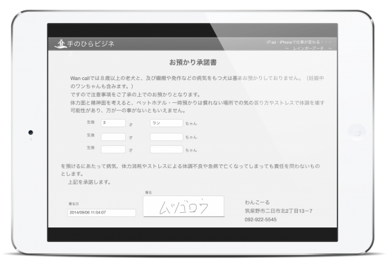 現在の文章構成をそのままに大事な「署名欄」をiPadで利用できます。