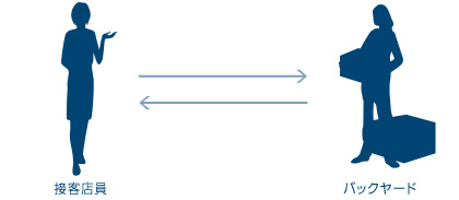 で、店頭に来店されたお客様の希望を聞いたりしたうえで、バックヤードまで在庫状況の確認をとったりします。