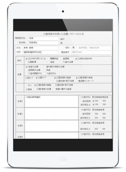 外出先でスタッフが患者さん別にその場で書き込み作業