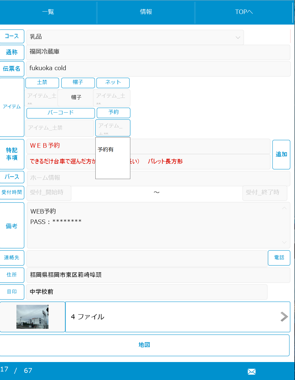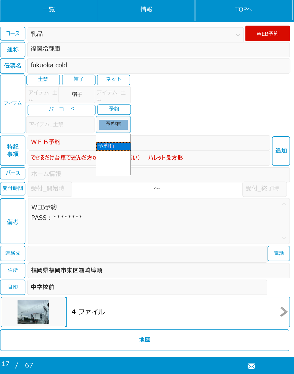 「WEB予約」に有りを選択した場合にのみ「WEB予約」ボタンが表示されるようにすることで、全体的な登録内容との違いができ、ボタンを赤色にする事で注意を引くようにしてあります。
