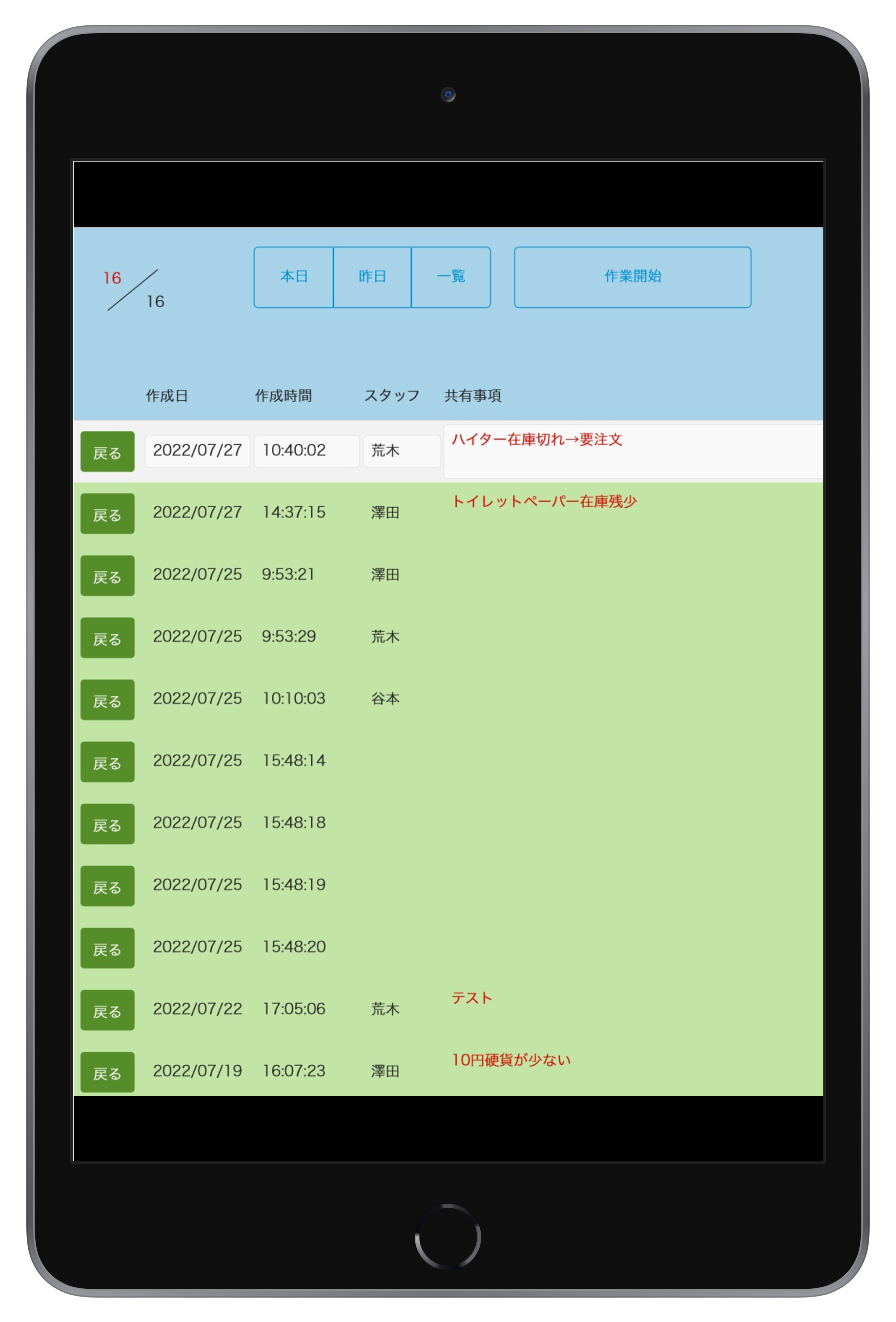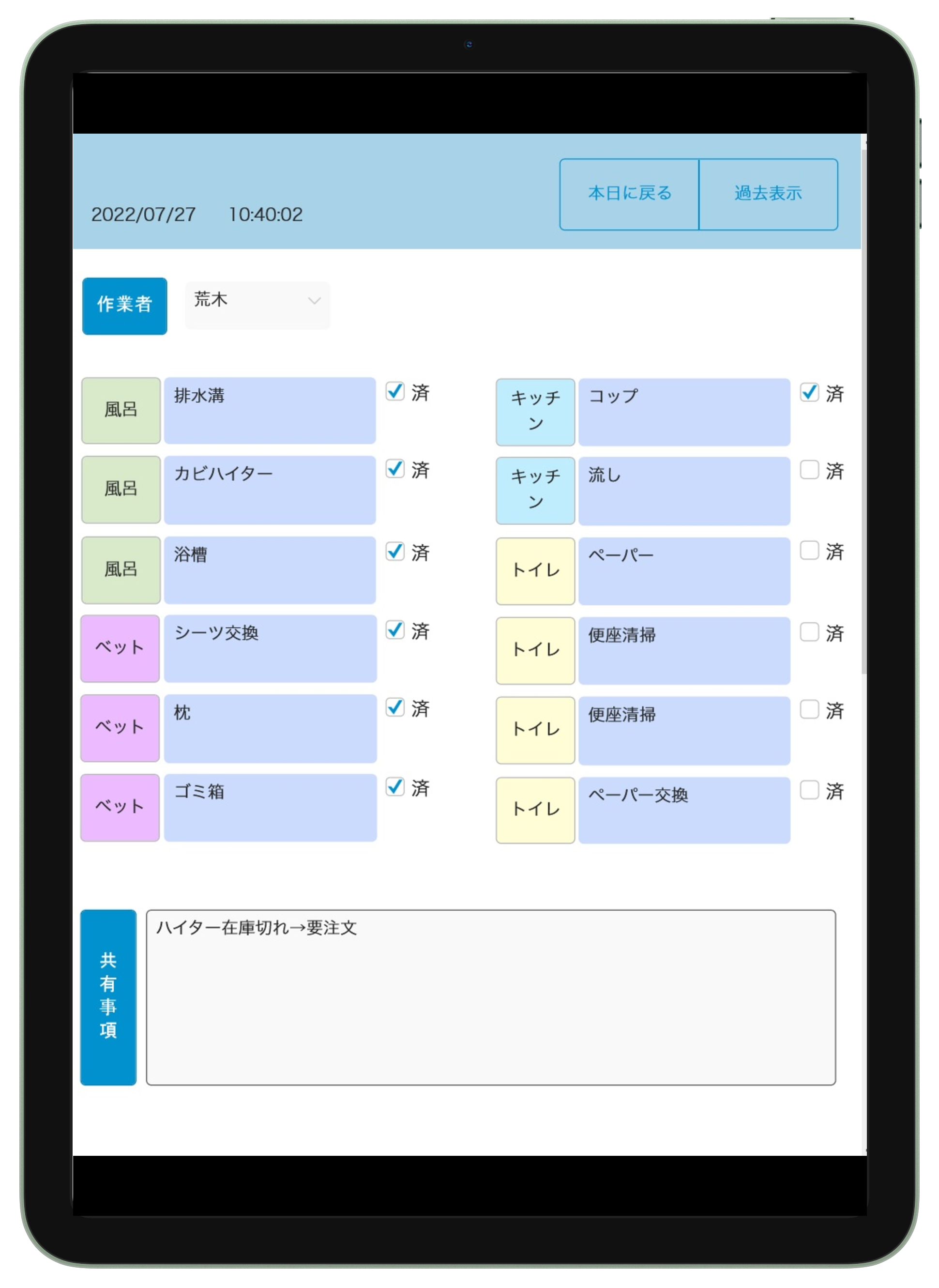 店舗で利用の「作業のチェック項目」をiPadで管理したい