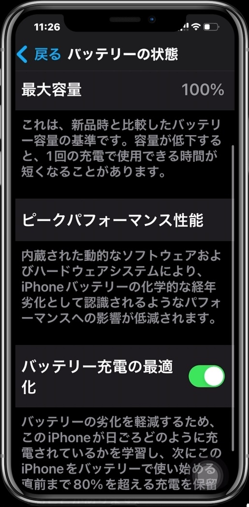 「バッテリー充電の最適化」を上手く使い、より長いiPnoneライフを楽しみたいですね。