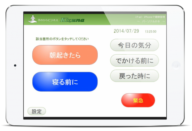 ボタンを押すことで登録済みのデバイスへメールが飛び、毎日の健康をおしらせする仕組みです。