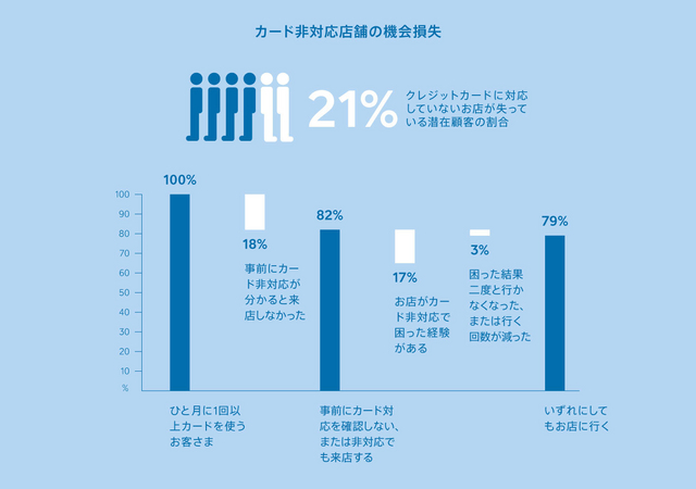 クレジットカード決済の「Square」よりカード決済対応における売上げ損失データが調査されています。